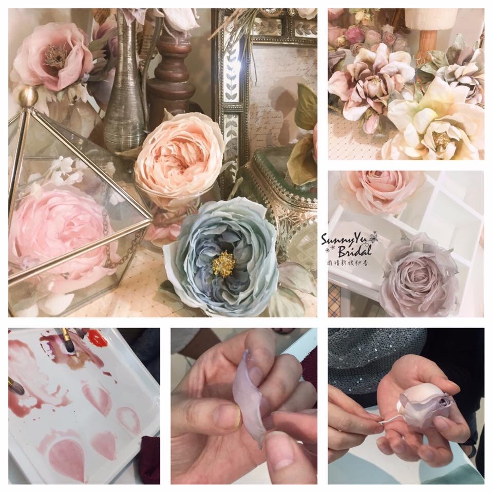 從剪裁花瓣、調色染布料、燙花型、做花的小表情直到最後的組合⋯