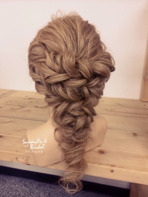 像這種水滴狀髮型就是有種很公主的浪漫感,利用兩股加編的方式創造頭髮的線條。