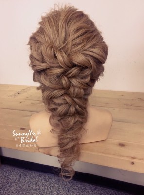 利用原有的髮型,也能變化出盤髮造型及公主半頭造型,當然捲度跟線條都是很重要的,才能做出漂亮的髮型。