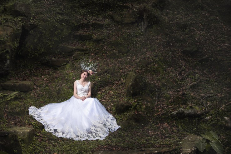 喜歡這張在溪流間穿梭的感覺,那倒影更讓人覺得她是從河流出現的仙女,正在勇敢找尋著屬於她的幸福。