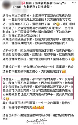 朋友說妳可以天天綁這樣嗎?新娘說那我要天天請雨晴幫我造型嗎