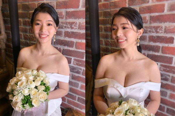 新娘的眼型是內雙,為了看起來更有神,調整成明顯的雙眼皮。
