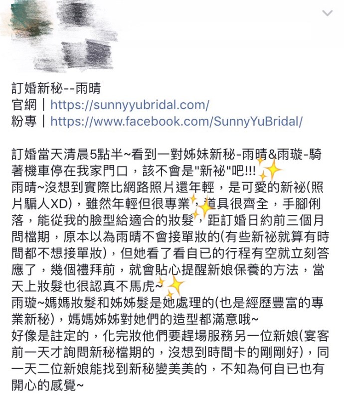 新秘這份工作,除了妝髮的技術外,更需要細心及沈穩的韌性。