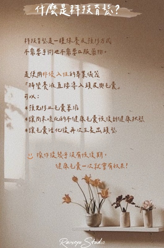 ▫️是一種頭皮保養及預防方式,不需要手術、口服藥物。