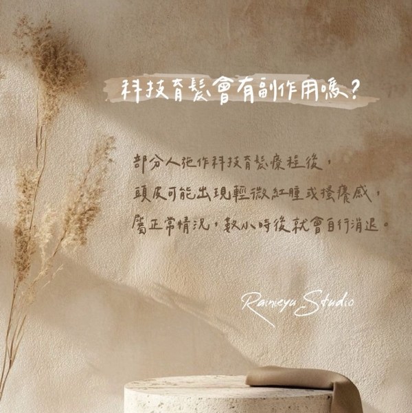 部分人施作科技育髮療程後,頭皮可能出現輕微紅腫或搔癢感,屬正常情況,數小時後就會自行消退。
