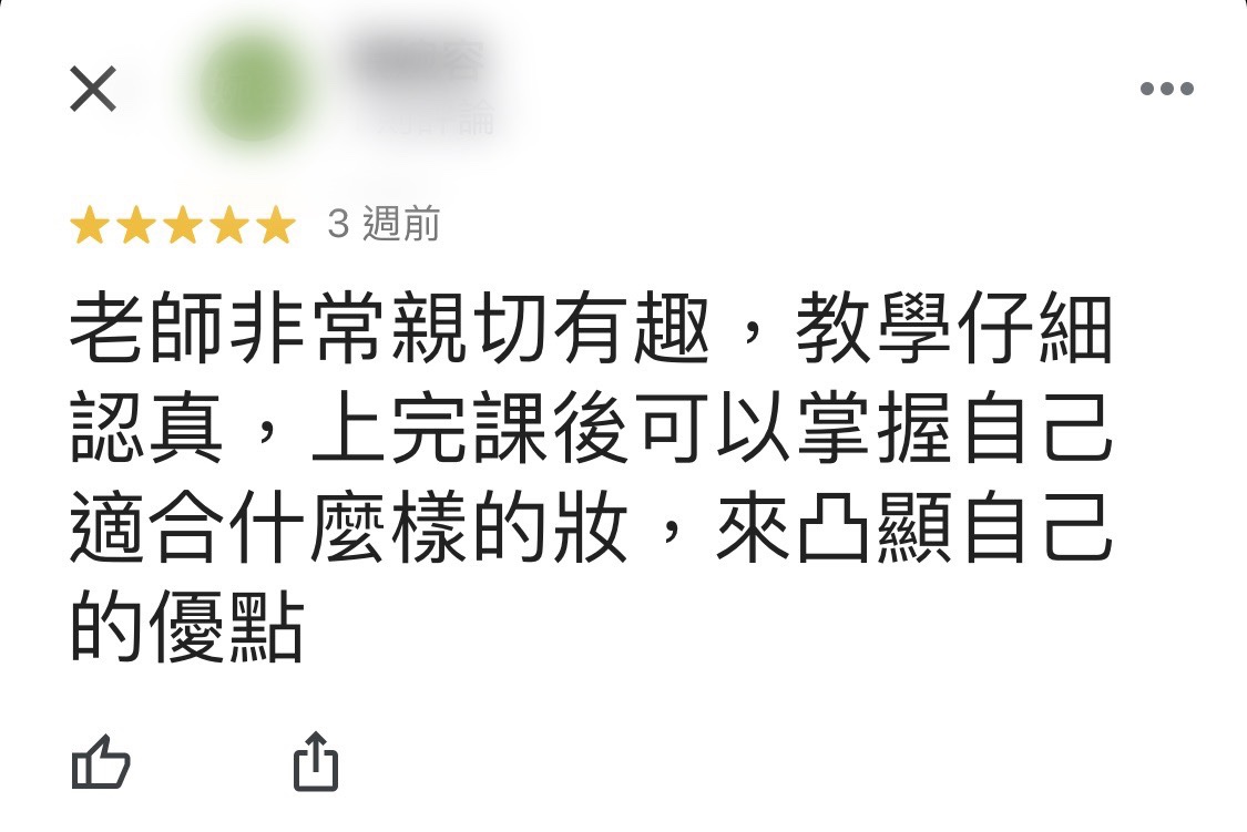 下課後,她看著鏡子說:「謝謝妳讓我知道,我原來是可以化妝的。而且還幫我找到,很適合我的裸妝感,看起來有化妝,但又像我原本的樣子。」