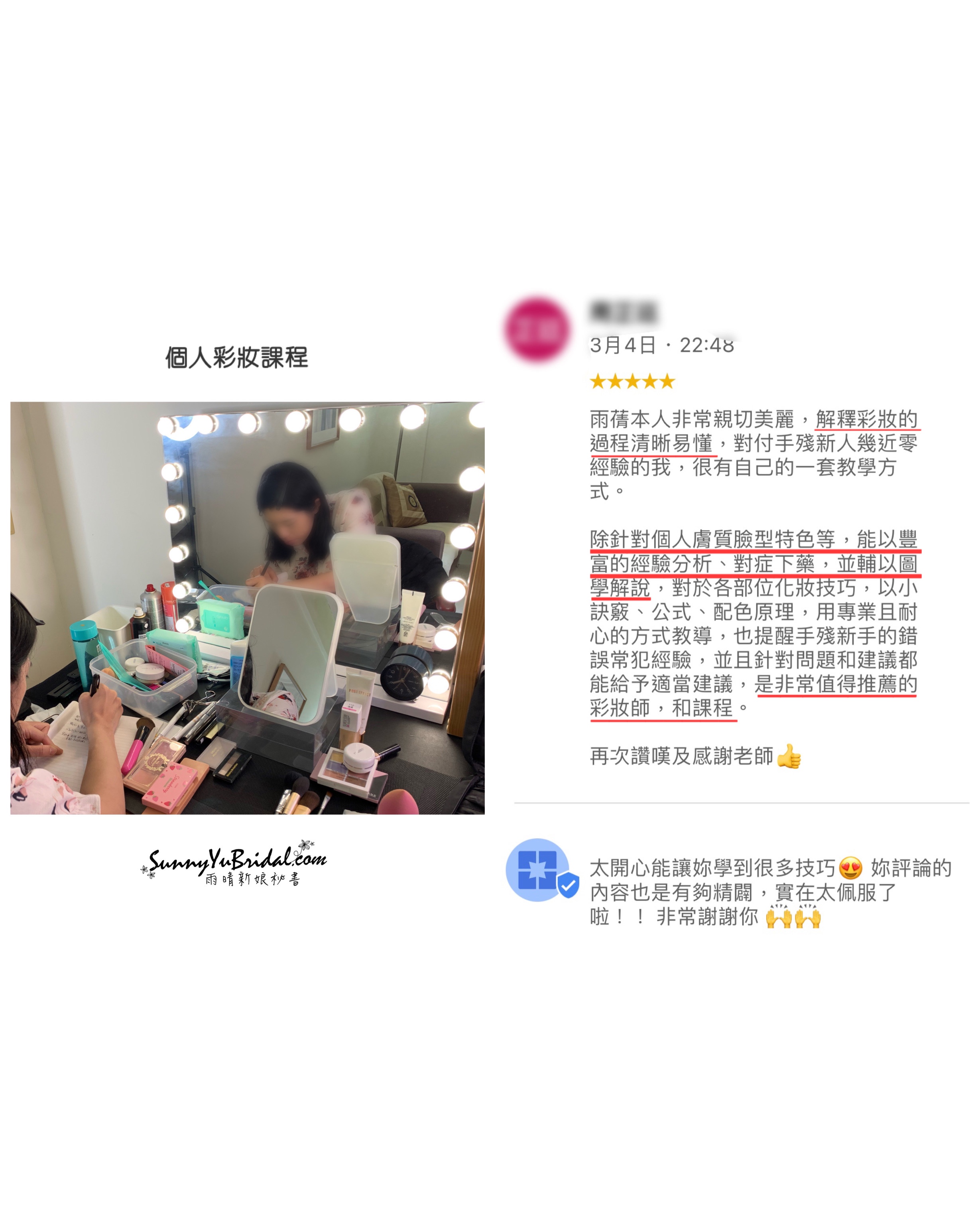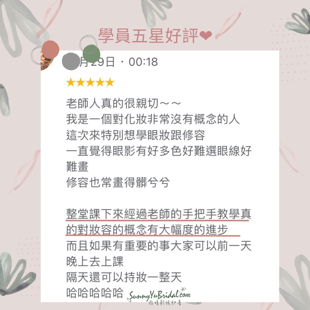 這次的學生是鐵粉啊!她說默默關注很久,每次要參加朋友婚禮始終約不到我幫她化妝,只好轉戰約我「個人彩妝班」🤣🤣