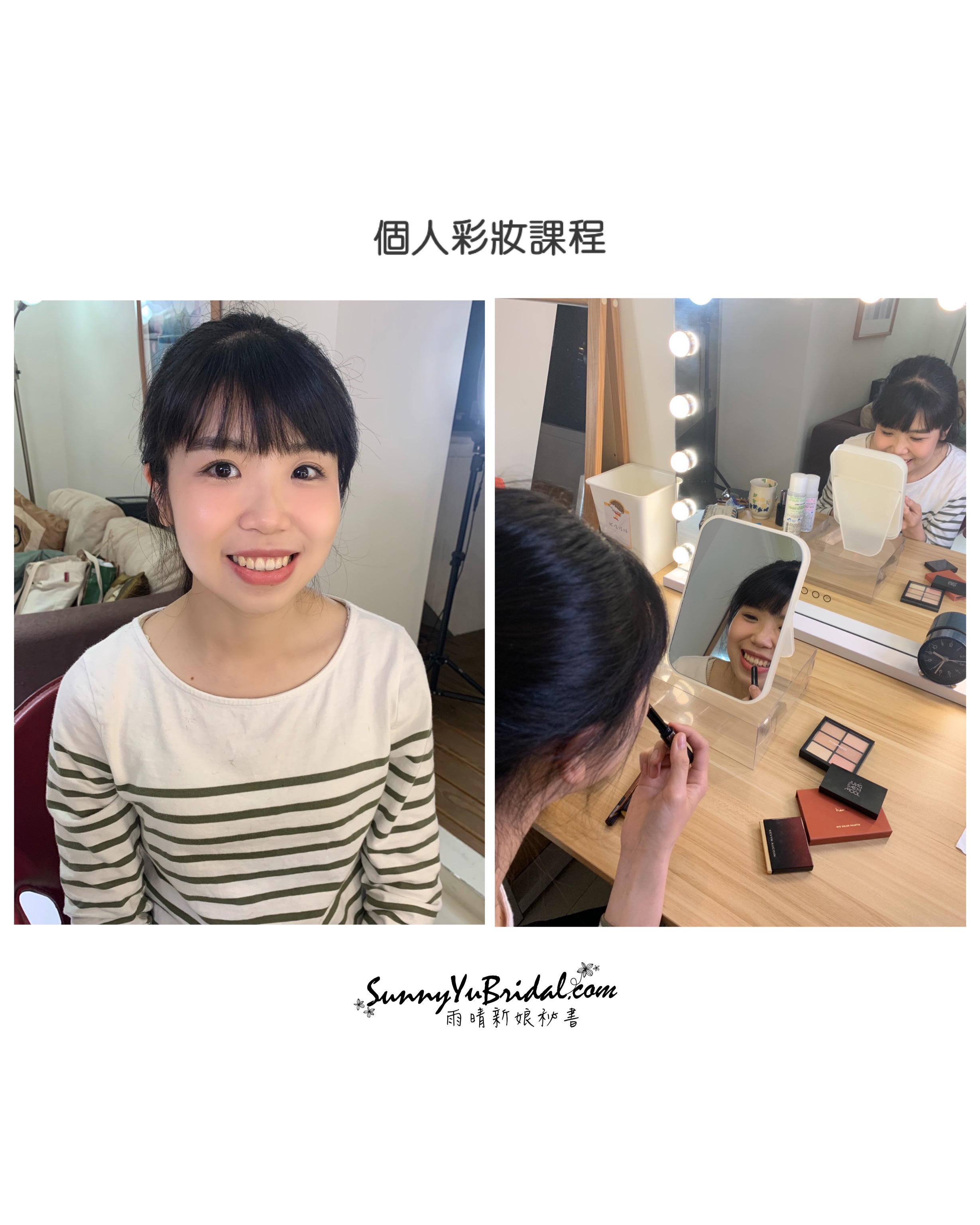 Instagram作品: https://instagram.com/sunnyyu_bridal_makeup- 除了彩妝,妳也許不曾想過髮型也是非常重要的!日常髮型整理 (點選連結看課程資訊!)