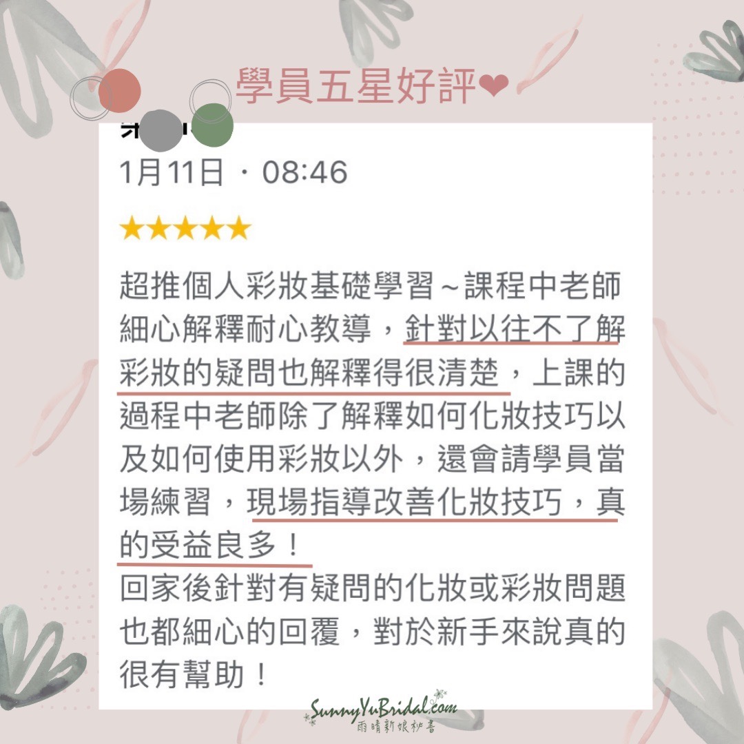 藉由老師精闢分析,才知道怎麼樣的畫法是正確/適合妳/自己喜歡的。