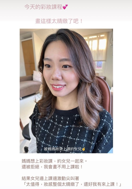 「老師,妳教得好仔細!原來要這樣畫。」「老師我要再來找妳學不同的妝感!」